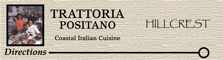 Trattoria Positano Hillcrest Location 142 University Ave # G San Diego, CA 92103(619) 294-6995 (get map) email contact: positano@trattoriapositano.com